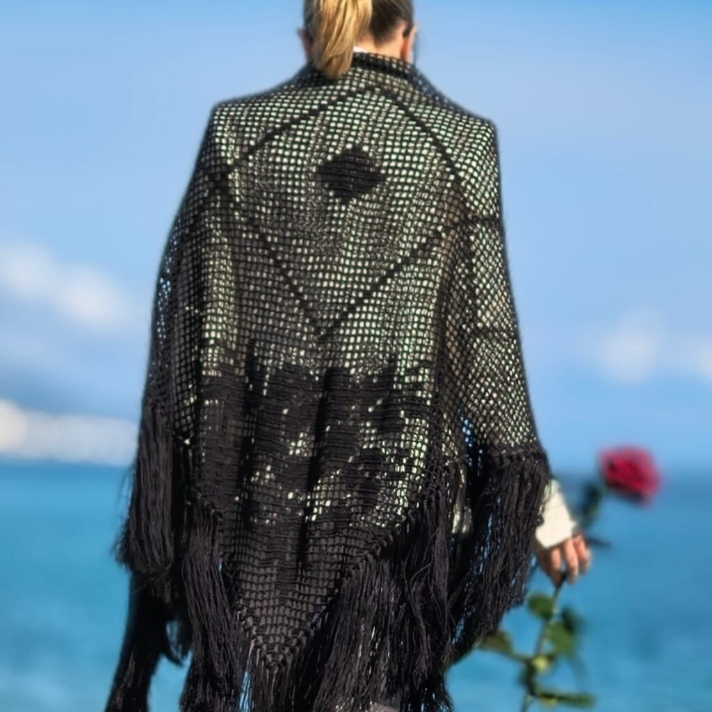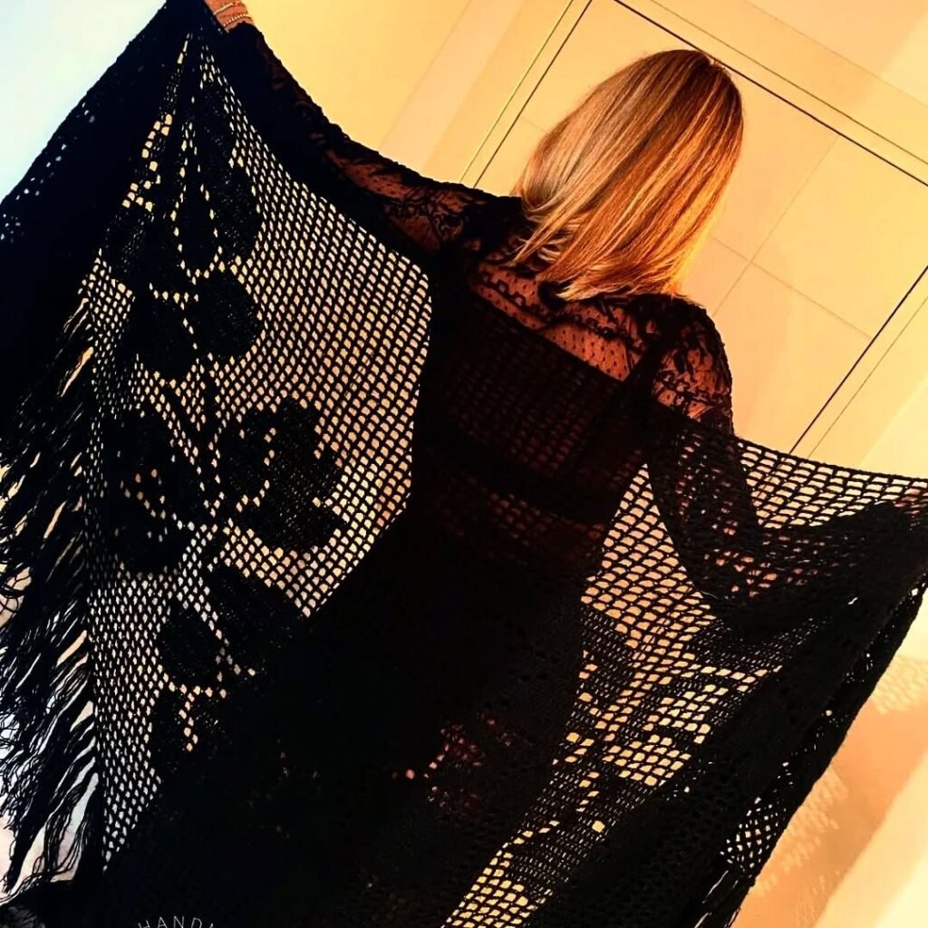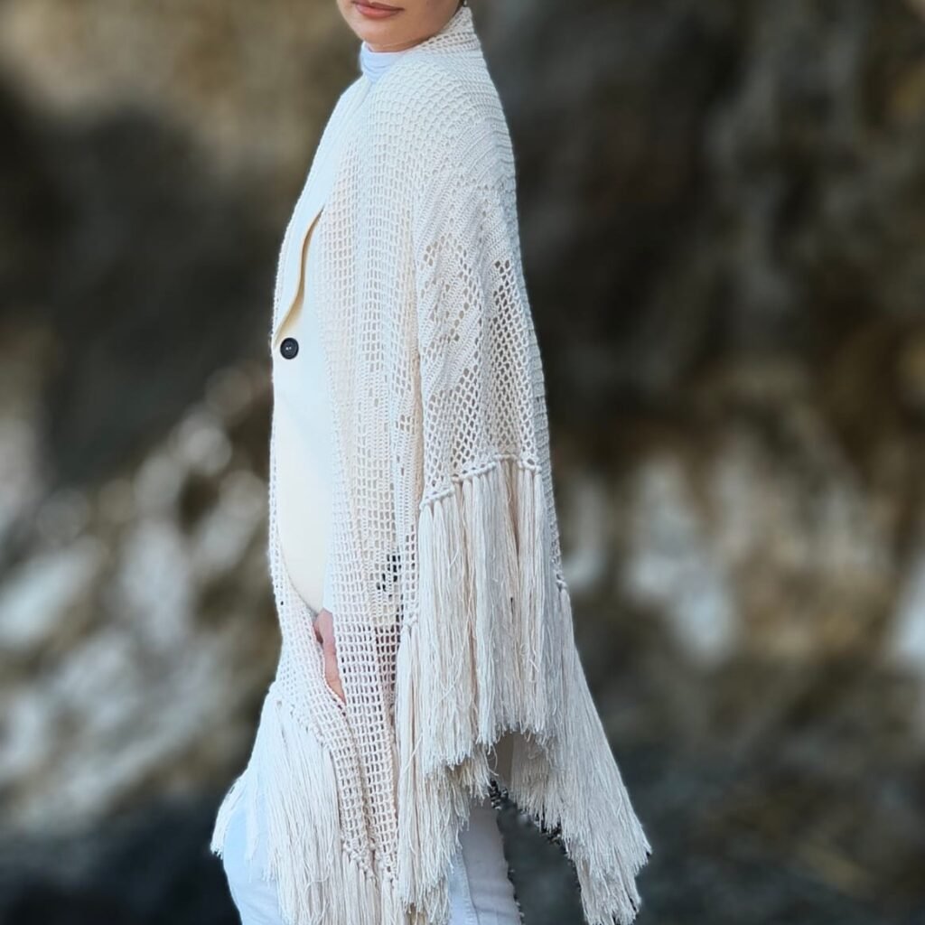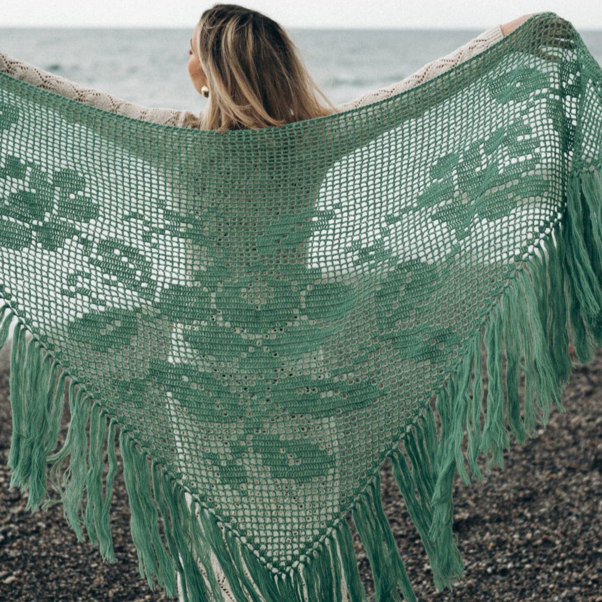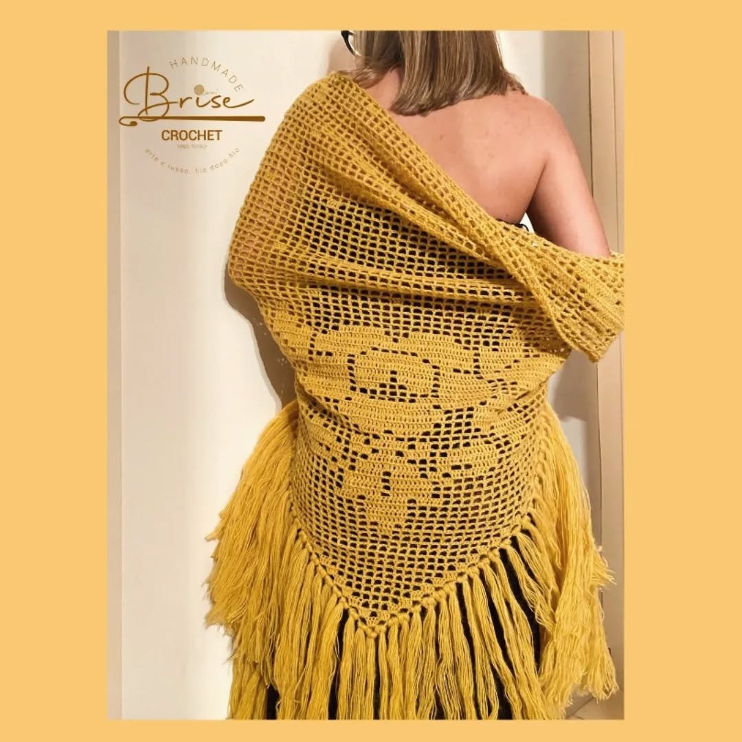 Scialle bianco in cotone realizzato al filet con tulipani e lilium